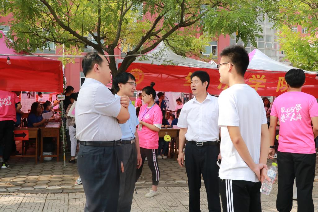浏览量: 更新日期:2019-09-07秋日杲杲,丹桂飘香,又是一年迎新时。经过紧张有序的前期准备,9月7日,水果派av 迎新活动正式拉开帷幕。党委书记刘进、党委副书记赵杰、16级辅导员李静琪、19级辅导员董世超到迎新现场询问迎新工作安排与新生报到情况。