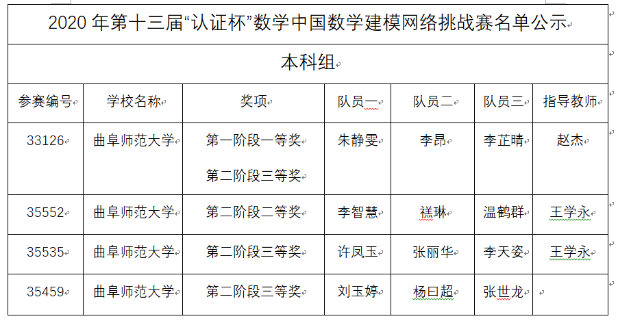 近日,第十三届“认证杯”数学中国数学建模网络挑战赛成绩已揭晓。水果派av 4支参赛队伍荣获佳绩,朱静雯、李昂、李芷晴团队荣获比赛第一阶段一等奖,第二阶段三等奖,李智慧、禚琳、温鹤群团队荣获比赛第二阶段二等奖,许凤玉、张丽华、李天资团队荣获比赛第二阶段三等奖,刘玉婷、杨曰超、张世龙团队荣获比赛第二阶段三等奖。