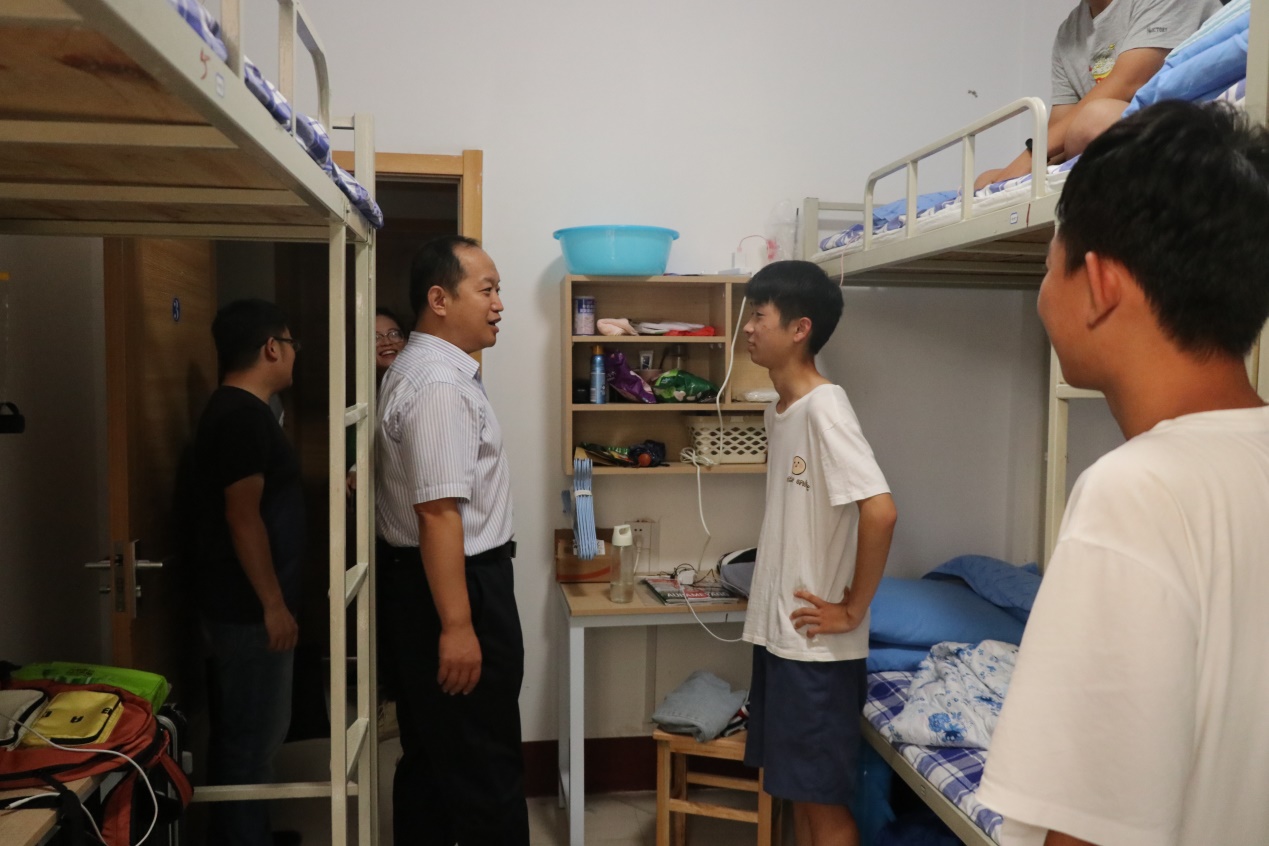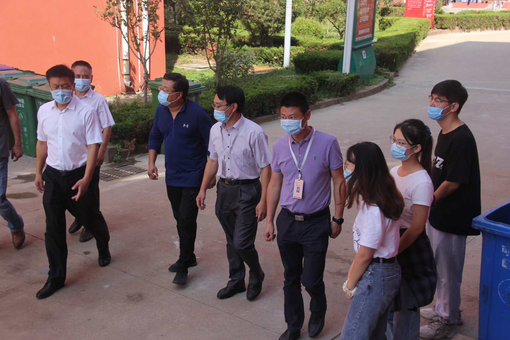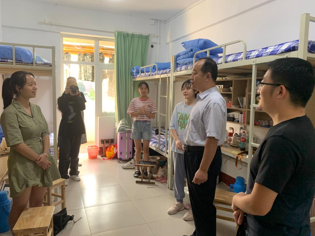 党委书记刘进、党委副书记赵杰、副院长刘金发走访新生宿舍园区看望、慰问20级新生,2020级辅导员李静琪、董晓宇及19届团委学生会主席团成员前往陪同。