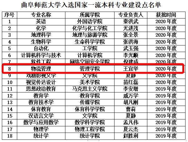 热烈祝贺学院物流管理专业入选2020年度国家级一流本科专业建设点