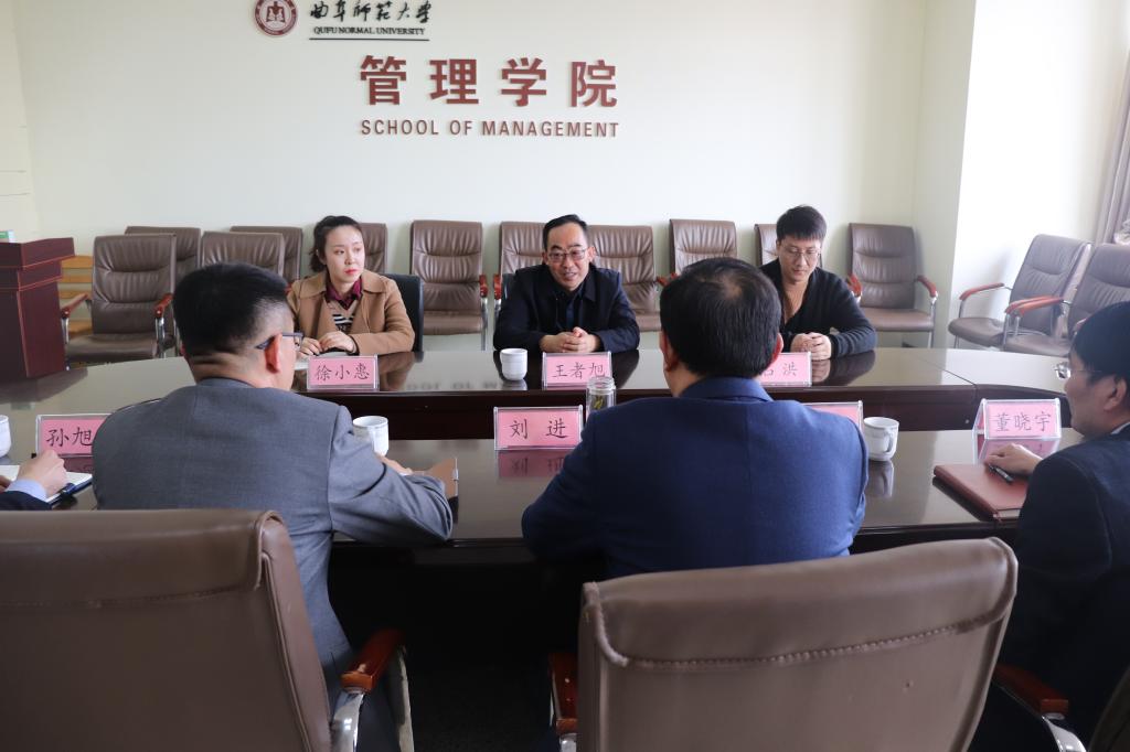 3月26日,烟台大学经济水果派av 党总支书记王者旭一行3人来水果派av 考察交流,水果派av 党委书记刘进、党委副书记赵杰、经济学院党委副书记胡一杰参加座谈。