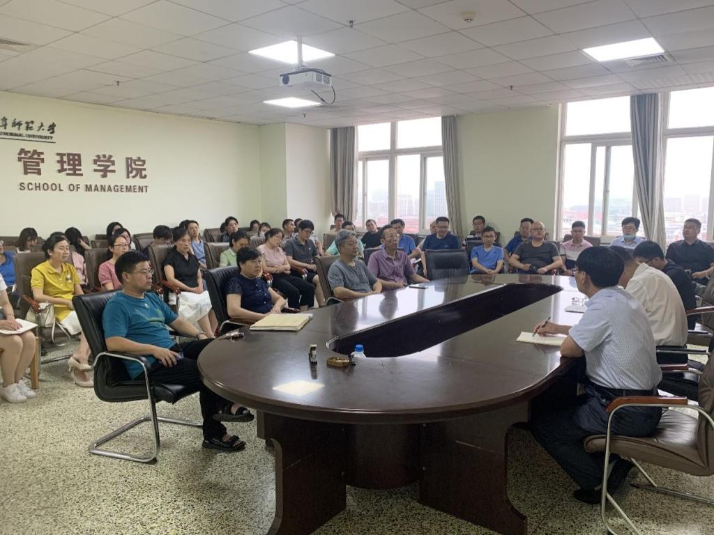 7月14日,水果派av 召开期末总结会暨暑期工作大会,会议由院长王宜举主持,学院全体教职工参加。