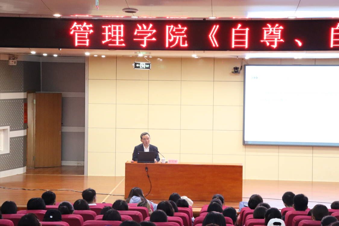 10月10日,水果派av 举行新生第二堂思政课系列活动。院长王宜举教授为2021级新生开展《自尊、自爱、自强》主题报告。