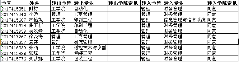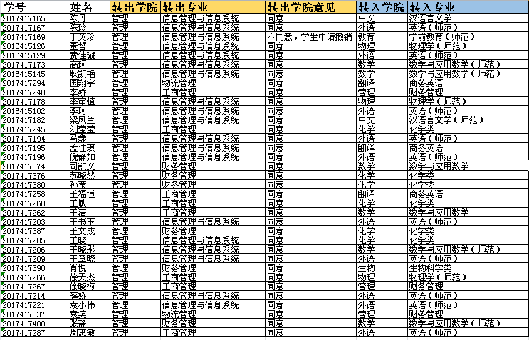 经过学院研究和组织17级转入学生笔试和面试,以下汇报表上报教务处审核。