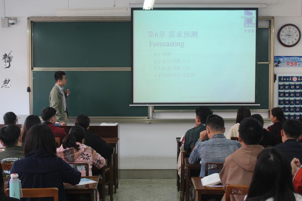 10月27日9:00,王成飞老师于JC103举行水果派av 青年教师公开课第九讲——《生产运作管理-需求预测》。课堂初始,王成飞老师以常见现象为导入点,引入课堂内容。在课堂上,王老师积极与学生互动,同学们也积极响应。在提问过程中,同学们积极思考,踊跃发言,课堂气氛十分活跃。在王老师的课堂上,学生是课堂的主体,这种以学生为主的教学方式让同学们更容易接受和掌握课堂内容,更好地汲取知识。