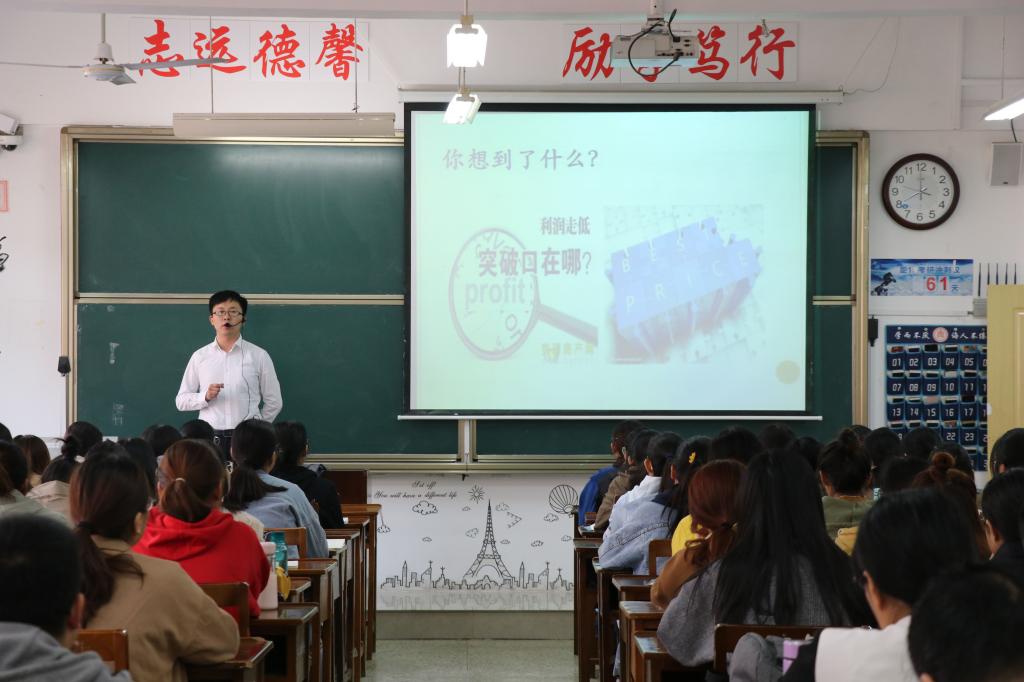 课堂上,费老师声音洪亮、精神饱满,他巧妙地运用趣味案例,凭借丰富的专业知识紧扣教学重点,循循善诱,使课堂达到引人入胜之效。