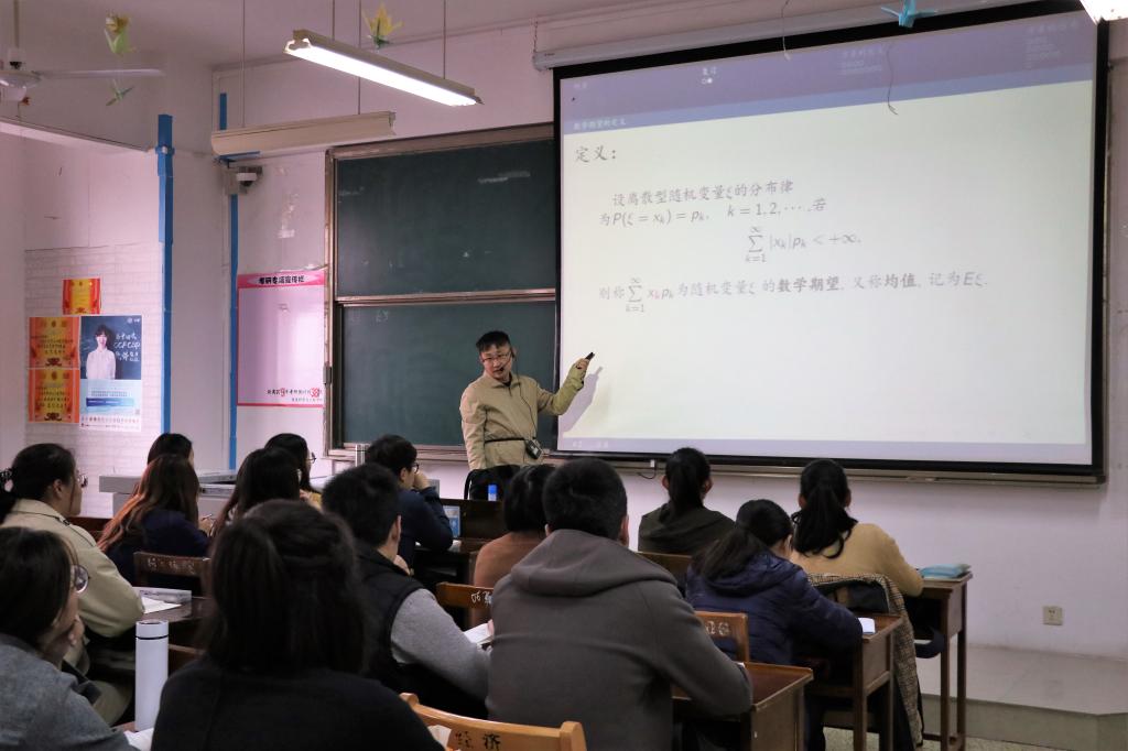 浏览量: 更新日期:2018-11-15为进一步提高青年教师教学技能,提高青年教师的课堂教学组织能力,11月15日,水果派av 青年教师公开课第七讲——《概率论与数理统计》于JC406如期开讲。水果派av 梁作松老师担任主讲人。