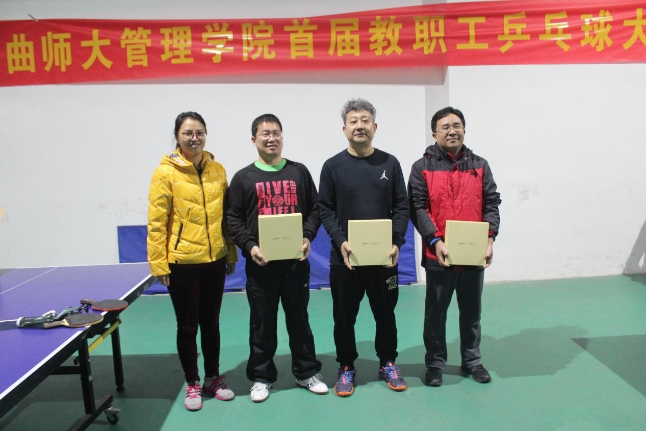 本次比赛共有4支教职工队伍的24名运动员参赛,采用5场3胜制,每场比赛采用三局两胜制,每局比赛采用11分制,打满五场。各参赛队员秉承“友谊第一,比赛第二”的竞赛精神,激烈争夺。赛场上精彩频现,直拍、横拍、扣球、旋转球...观众中不时爆发出阵阵掌声、喝彩声,气氛热烈。经过角逐,运筹高数队获得第一名,行政队获得第二名,管理一队和管理二队获得第三名。学院党委书记刘进出席闭幕式并致辞,学院工会主席徐健腾为获奖队伍颁奖。